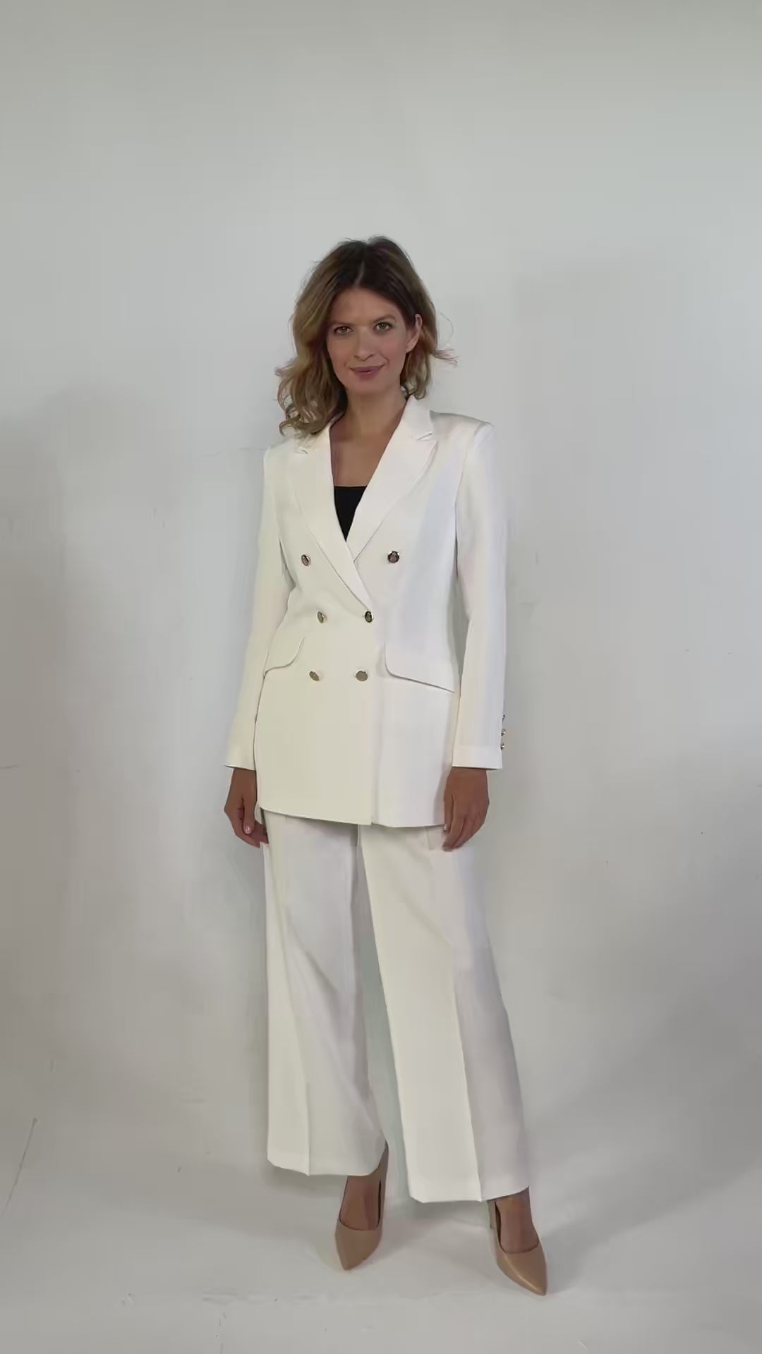 • Elegant Double-Breasted Design: Features stylish crest buttons.
